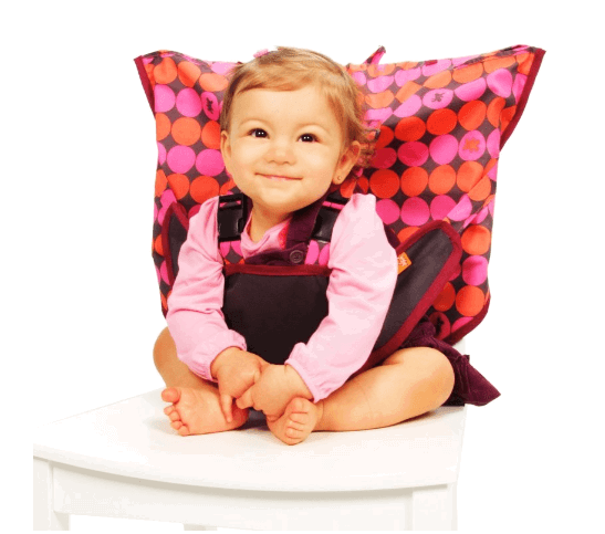 Totseat fits on all chairs and secures with a clip as compared to tying like other similar booster seats. Dubbed ‘washable squashable’, it is easy-to-clean and easy-to-pack. It also comes with a handy-carry bag which is perfect for travel! Your little one would sit comfortably and securely during dinnertime.