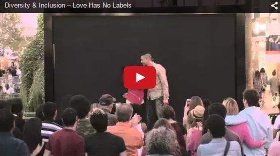 Check out this brilliant message on diversity! First, a couple were hidden behind this screen. People gasped when they revealed themselves...