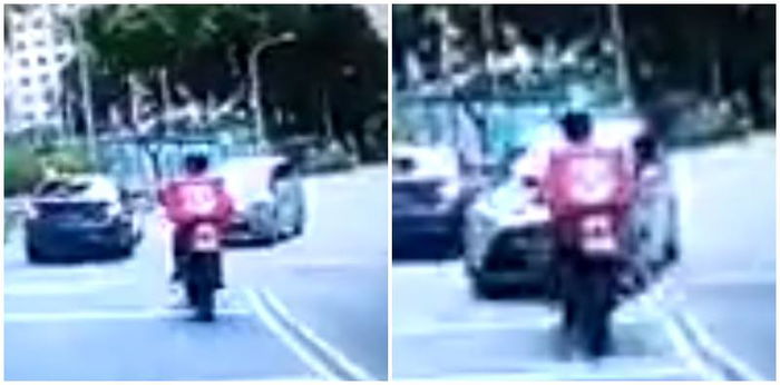 As the vehicle drives along a bend, a car suddenly comes from the opposite direction. The car seems to have lost control, and crosses into the wrong lane, crashing into a Foodpanda rider and sending him flying. It is scary to watch, and we hope the rider is okay.