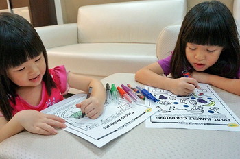 The activity sheets from Crayola included elements of math, imagination and object association on top of the usual coloring elements too! As Steffi colored the various fruits in her sheet, she was also made to count and write down the numbers of the different fruits. Meanwhile Stacci had fun coloring the circus stands before drawing her animals! Finding and counting the number of owls in another coloring sheet was a lot of fun for both of them too.