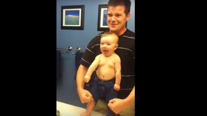 Be prepared for cuteness overload as this sweet baby flexes his muscles with Dad! We think this is way too cute, and we're sure you will too