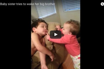 With a little help from mummy, this baby wakes her brother up. We've never seen sibling love this sweet before!