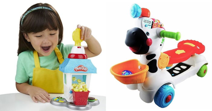 This Play-Doh popcorn maker toy has everything you need to make creative popcorn masterpieces, including three sizes of buckets, snack mixes like pretend pretzels and candy, and even squeezable Play-Doh syrup using the syrup tool!