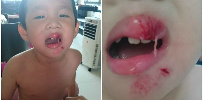 Kyle, meanwhile, was taken by ambulance to KK Women’s and Children’s Hospital for his injuries, including a cut on his chin, loose teeth and bruises.