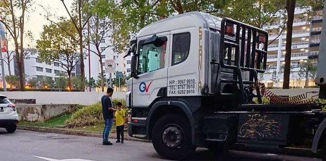 Raymond shared the incident in a Facebook post on September 20, 2021, which has since gone viral on the Internet. He explained that he noticed the father and son hanging around his company’s trucks–the Scania S500 Highline prime mover–in the evening when he punched out from work.