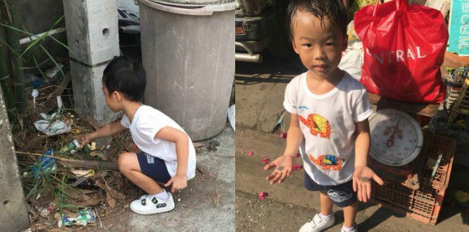 In a series of posts on Facebook, which have since gone viral with over 60,000 shares, the clever mum Nuttanitcha Chotsirimeteekul recounts how she and her husband went around the city with their child, making him pick up other people’s trash for a profit.