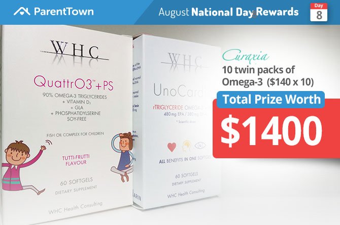 We can all benefit from consuming Omega-3 oils to support our heart, brain, eye and skin health. Curaxia is giving 10 lucky winners each a twin pack consisting of UnoCardio (Omega-3 for adults) QuattrO3+PS (Omega-3 for children 3-14 years old) to keep you and your child healthy.