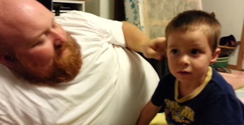 Daddy took my nose and ear: This little boy cried buckets when his Daddy pulled off his nose and ear. Watch it now...