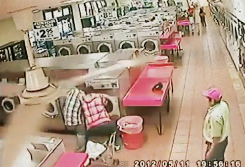 The second the washing machine doors are opened, the man picks up the toddler and walks away quickly without even checking him for injuries, presumably to avoid anyone calling the police to investigate the matter.