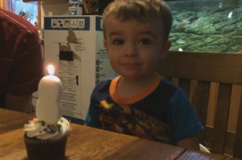 Watch how this patient dad helps son blow out candle do it all by himself and smartly helps him. Learn from this video, how to become a super dad.