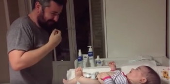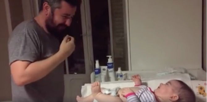Watch as this one dad try not to puke while changing his daughter’s stinky diaper!