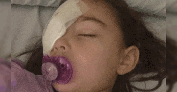 Michelle’s then four-year-old daughter Skyla had been playing outside when another child threw something at her face. What was thrown was unclear, Skyla says it was a rock, the daycare says it was a small toy airplane. Either way, Skyla was hit in the face and was now refusing to open her eye.