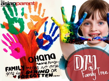 Each family member takes turns to firmly lay their hands down on the paper, on their chosen branch, one hand at a time. Make sure the hand-prints are spread out evenly on the branches your family tree.