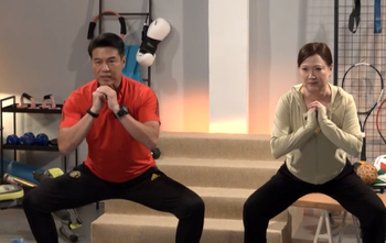 Huifang may not like strenuous exercise like her husband, but she did join him in doing stretches on Chat With The Stars.