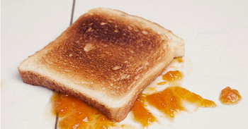 “Prof. Schaffner used watermelon, bread, bread and butter, and gummy bears to carry out his tests, dropping them on stainless steel, ceramic tiles, wood, and carpet for less than one second, then moving up to five, 30, and finally, 300.”
