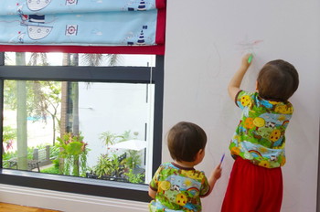 Kids excited when they were asked to draw over the newly-painted Dulux Wash and Wear wall!