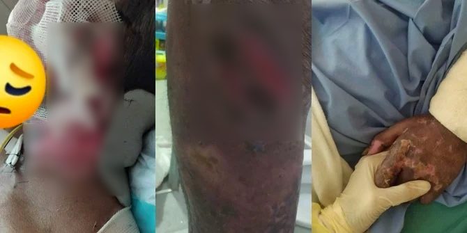 Images reveal his hands, legs, neck, face, and shoulders have been severely burnt.