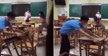 Frustrated by rowdy students, a teacher in Taiwan flipped several tables as she experienced a meltdown after the class ended.