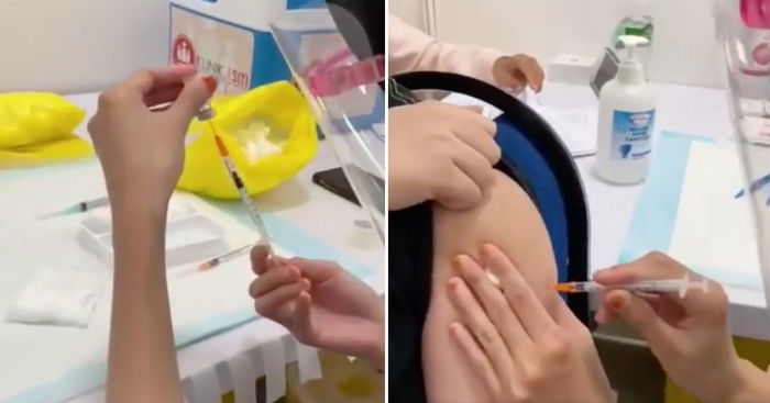In yet another video clip, a healthcare worker in Malaysia was caught administering the Covid-19 vaccine incorrectly on Sept 30.