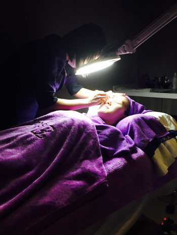 To cool my skin and reduce the chances of redeness, Alice then carefully applied ActivCalm Calming Lotion with ice cubes immediately on each area she worked on. An eye mask was applied and a dollop of pink yogurt-looking mask called Derma Calm Ultra-Sensitive Mask was spread on top to help with skin sensitivity and irritation.
