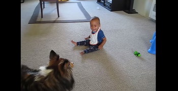 Excited dog plays with baby: Watch what happens when Pumpkin, a Shetland Sheepdog plays with the family's toddler. Truly an amazing sight...