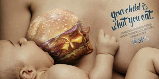 Brazil’s Paediatric Society of Rio Grande (SPRS) created some powerful and striking imagery to help endorse a campaign that aims to educate pregnant women and nursing mothers on the importance of healthy eating.