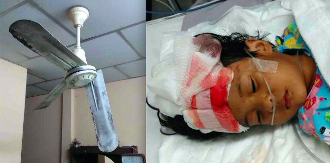 “But the tot was left with a severe injury when her head clattered into the spinning fan – hitting her so hard that the metal blade bent with the impact.”