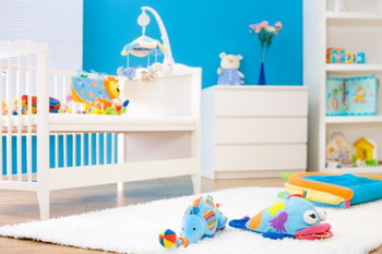Next the right colour of the room. Alright, so you know you’re having a baby boy. Instead of opting for the typical blue, why not a lovely shade of sunny yellow or beautiful white that would make that fancy blue crib stand out? Soothing colours are usually recommended. ‘Clouded Pearl’ white, ‘Salisbury Stone’ yellow, ‘Tuscan Glade 5’ green and ‘Mellow Heather’ purple, are some calming colours that can be considered for both – a girl’s room and a boy’s room. Bright colours tend to stimulate the senses and work better for playrooms.