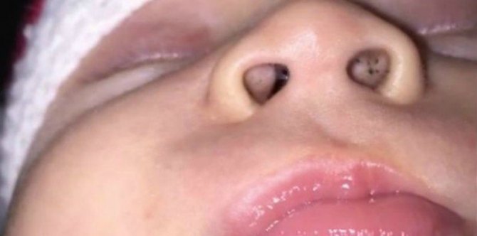 It wasn’t until she picked up her baby to feed him and saw they the baby too had black specks in his nose did it occur to her that something had gone wrong.