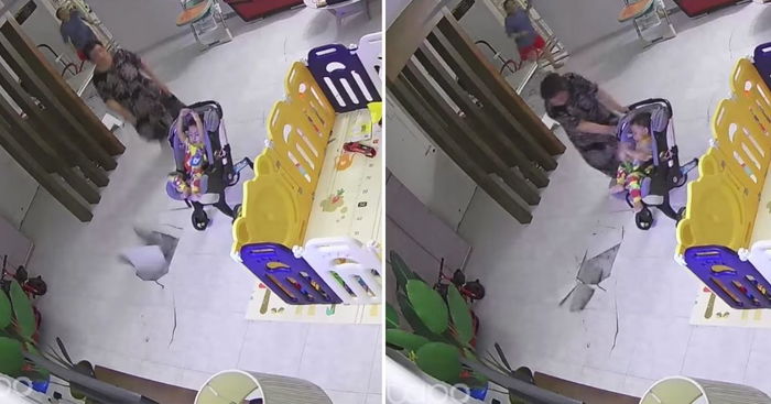 Floor Tiles Cracking and Suddenly Explode with Grandmother and Toddler Inches Away
