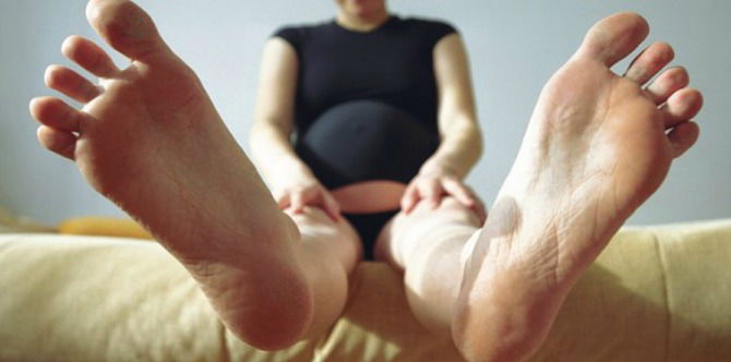 She has large feet to begin with, and her two pregnancies only made it bigger.