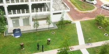 A photo taken by a resident showed a police tent at the ground floor of the carpark, with two bicycles lying on the footpath.