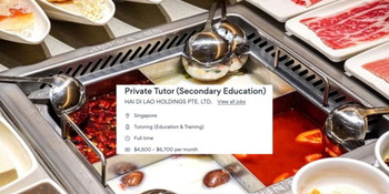 The job listing for a private tutor for secondary education was posted on the Jobstreet website on April 8 by Hai Di Lao Holdings Pte. Ltd.