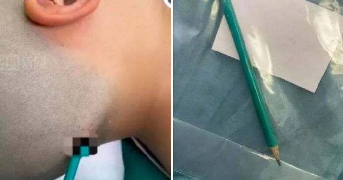 Driven to frustration over his son’s refusal to redo his homework, an angry father struck the child with his bare hands, only to discover a pencil lodged into the back of the boy’s head afterwards.