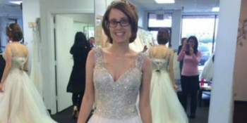 John Polo shared the following photo of his wife modeling the dress that she was supposed to wear to their wedding. A wedding that sadly, never came to be.