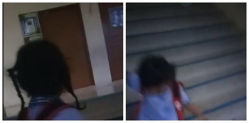 The mum observed her daughter, Im-aim, speaking to someone by the doors of the computer lab on the school’s second storey. Although the video clearly shows the young girl being the only person there, the mum still questioned who her friend was.