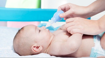 Before sucking your baby’s nose, make sure to put a few drops of saline in your baby’s nose.