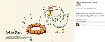 “The Golden Goose was prized for her eggs, that shone light in brilliant gold. But there soon came a time she could make them no more, For her egg-making device was rusty and old.” The tale might be told with tongue firmly in cheek but at the same time it comes with an alarmist moral — “1 out of 3 women over 35 will have problems conceiving. 2 out of 3 women over the age of 40 will not be able to conceive at all.” If that is not an example of fear-mongering, we don’t know what is. This particular reworked fairy tale also reduces the woman’s worth to that of a baby-making machine, a concept that is deeply rooted in the past and should not have a place in our generation.