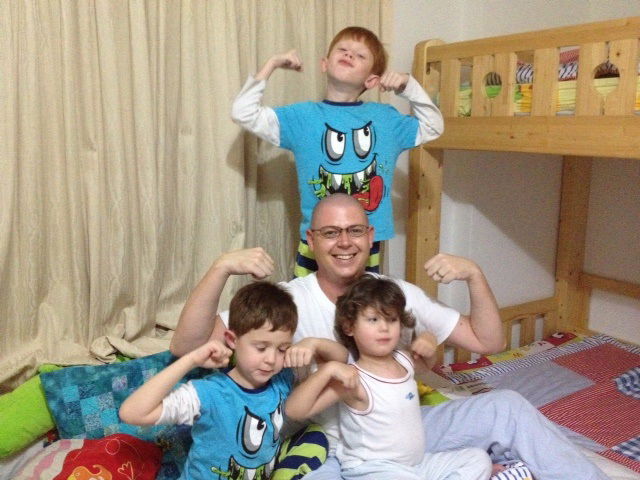 Jani’s boys: Harry – 7 and a half (top), Benjamin – 6 (left), Adam who’s almost 4 (right) and her husband.