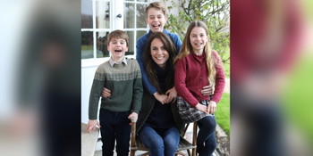 This photo, showing Catherine with her children George, Charlotte and Louis, was released to mark Mother’s Day on Sunday. The circled areas of the picture appear to show evidence of manipulation. | Image from Kensington Palace