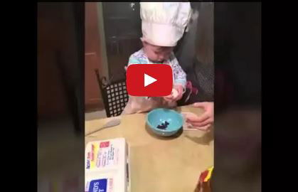 Ignoring the mess that they make, kids in the kitchen are as cute as they get. Watch this little tot crack an egg without dropping a shell into the bowl.