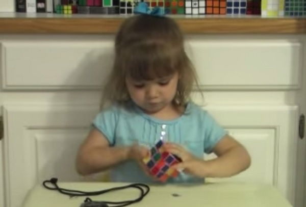 Little girl solves Rubik's cube: 3-year-old Emily Gittemier learned to solve the Rubik's cube by watching her older brothers. Watch it now!