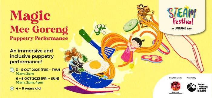 Get ready to embark on an enchanting culinary journey like never before! From October 3rd to October 8th, 2023, the Marquee at the Science Centre Singapore will come alive with the mesmerising “Magic Mee Goreng” Puppetry Performance, the ultimate Children’s Day celebration. This highly interactive and inclusive show promises to captivate young hearts and curious minds, making it a must-attend event for families of all backgrounds.