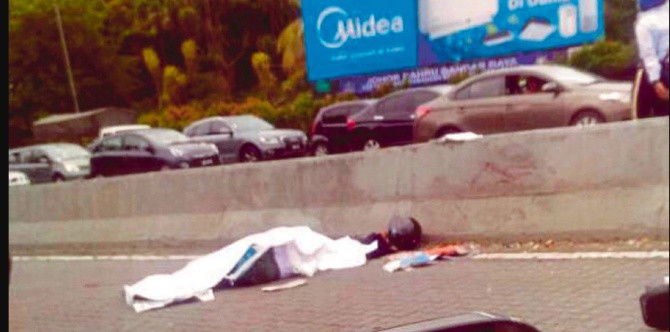 An unidentified teenage boy was hit by a van when riding a motorcycle. The teen was still wearing his school uniform as he lay sprawled on the pavement, bleeding profusely from a head wound.