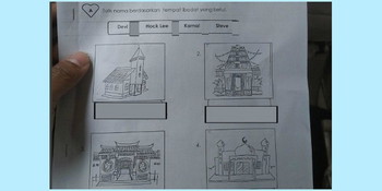 She tells us, “We don’t do these kind of worksheets. We do say that place of worship for Hindus is temple, for Christians it’s church, mosque for Muslims…we usually talk to children about religion only during festivals. When Hari Raya comes, we may talk about how Muslims celebrate Hari Raya etc…”
