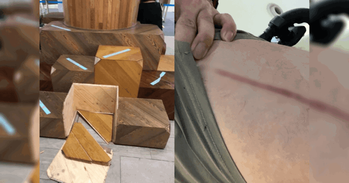 Raising concerns about the wooden seat, which appeared to be hollow, Tan called on the mall to take responsibility for the accident and provide an explanation.