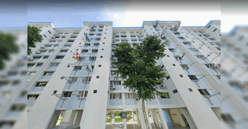 According to the Chinese daily, the concrete had fallen from the facade of the HDB block, exposing the steel bars within.