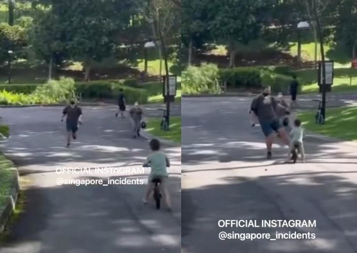 The incident looked to have occurred near the Admiralty Park playground and the man’s actions were caught on an eight-second clip.