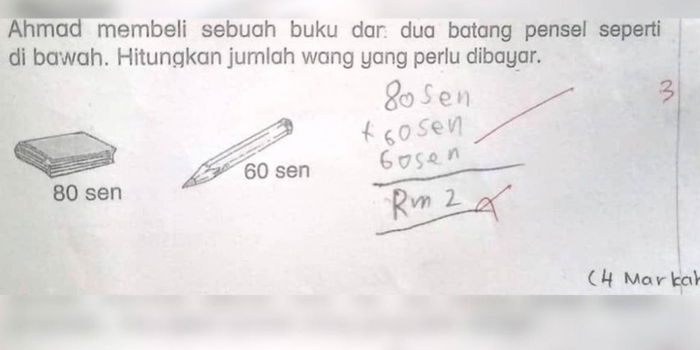 “RM2 is a clever and useful answer to ‘total sum of money he has to pay’… Please give full marks for this answer. This is indeed a KBAT (Kemahiran Berfikir Aras Tinggi, which translates to High-level Thinking Skills) answer.”