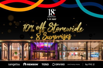 In celebration of this milestone 18th anniversary and to thank its many customers for the many years of support, mc.2 will be offering 10% OFF storewide and customers can stand a chance to win up to $888 cash vouchers or electronics items with any purchase of their products during the month of May. Note that the cash vouchers can be used to offset immediately with minimum spending of $3,000. While stocks last.